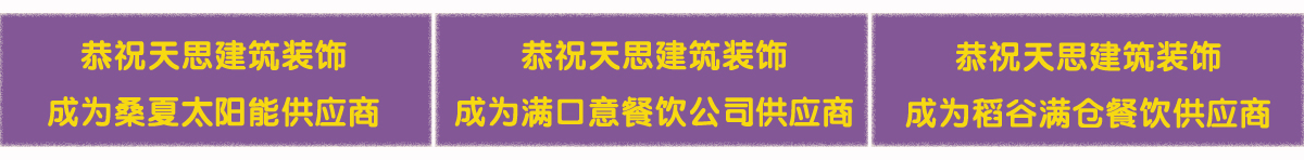 天思裝飾為您提供方便的一站式服務(wù),不僅能夠提供設(shè)計(jì)與施工服務(wù),還為您提供建材和家具。我們與眾多建材廠商、家具廠商有著密切合作關(guān)系,品類廣泛,物美價廉,滿足您的需求。